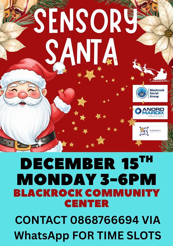 Don’t miss Sensory Santa December 15th 3–6pm at Blackrock Community Centre
