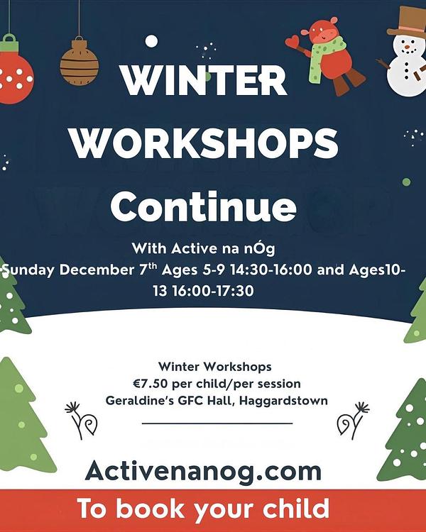 Our hugely popular Winter Workshops are back again this Sunday, December 7th in Geraldines GFC Hall, Haggardstown! 🎄✨